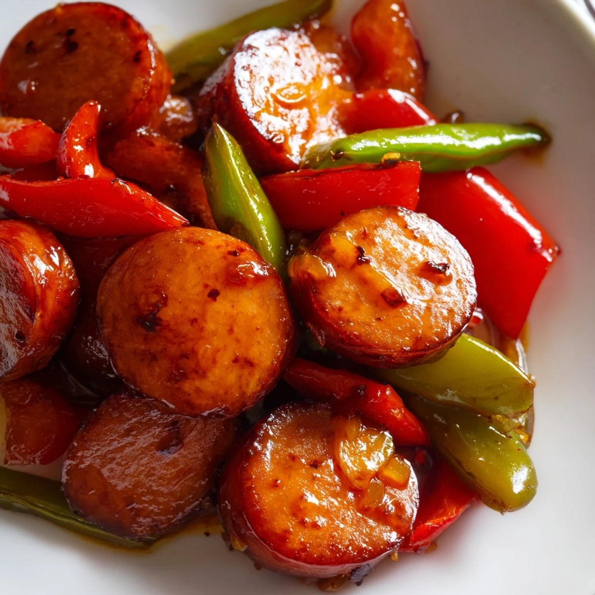 The glaze ingredients—honey, fresh minced garlic, soy sauce, black pepper, and paprika—create a glossy coating that caramelizes beautifully as the vegetables cook. The natural sweetness from honey complements the smoky sausage, while garlic adds aromatic depth. Serve this over steamed rice or quinoa for a complete meal, or enjoy it on its own for a lighter dinner option.