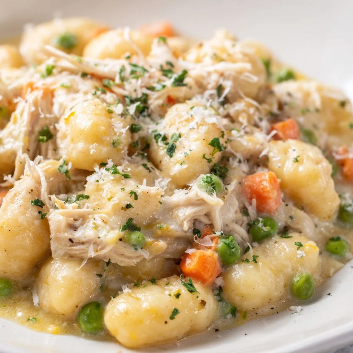 Store in an airtight container in the refrigerator for up to 3 days. Reheat gently on the stovetop with a splash of milk or broth to restore creaminess. The gnocchi may absorb more liquid as it sits.