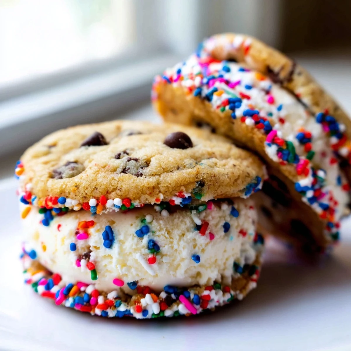 Set up a DIY station where guests can roll their own sandwich edges in extra sprinkles for a fun activity. These also pair wonderfully with fresh berries on the side for a fuller dessert experience.
